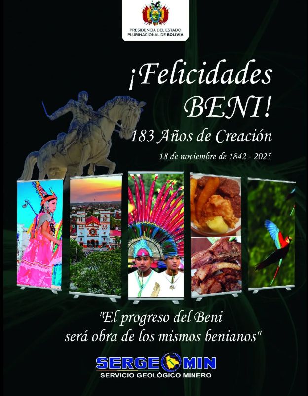 El SERGEOMIN expresa su más sincero reconocimiento al pueblo beniano, en la celebración del 183 aniversario de creación del departamento